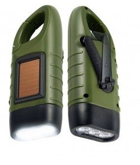 Een noodfluit of signaalfluit is een onmisbaar onderdeel van je uitrusting en kun je gebruiken als je je in een noodsituatie bevindt. Dit olijfgroene 'No Ball' noodfluitje van Mil-Tec is gemaakt van 100% ABS kunststof en past dankzij zijn compacte formaat en lage gewicht overal in je tas. Je kunt het fluitje natuurlijk ook om je nek dragen, omdat hij is uitgerust met een koord en karabijnhaak. - Zaklamp met zonnepaneel en noodgenerator